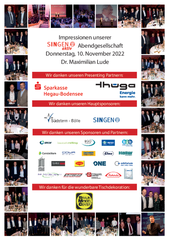Netzwerken in festlicher AtmosphäreJedes Jahr begrüßt Singen aktiv über 500 Gäste bei der Abendgesellschaft in der Singener Stadthalle.